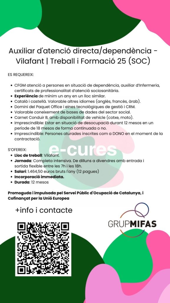 A E-Cures et podem ajudar a trobar-ne! Mira les ofertes que tenim penjades i envia la petició de la que més s’ajusti al teu perfil.